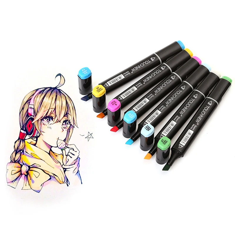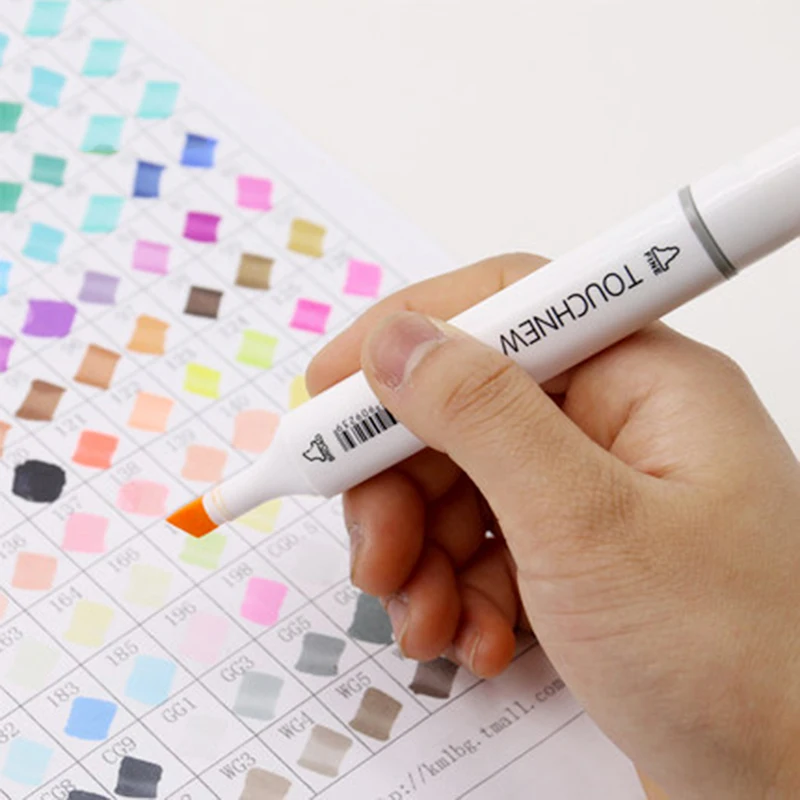 Маркеры TouchNEW Sketch предлагают не более 168 цветов. Сюда входят диапазоны, которые можно приобрести в виде предварительно выбранных наборов цветов, в том числе набор для оттенков кожи, набор для серых цветов в теплых и холодных тонах и т. д. обычно используемые цвета для разных областей в разные наборы. Например: