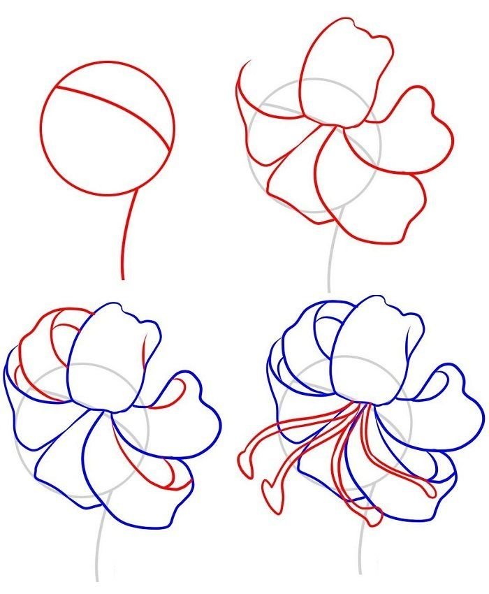 Ромашка — один из самых простых цветов для рисования. Это потому, что все лепестки одинаковы по форме и размеру. Вы можете начать с двух кругов и линии органической формы для стебля. Вам не нужно быть слишком точным при рисовании направляющих, так как ромашки не идеально симметричны. При рисовании лепестков делайте их одинаковыми по размеру и слегка перекрывайте друг друга. Как всегда, всплеск цвета может оживить рисунок, раскрасьте свои работы цветными карандашами , маркеры , акварельные краски или любой другой художественный материал который вы предпочитаете использовать.