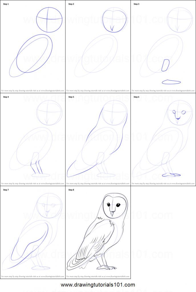 Следуйте видео и нарисуйте эту сову шаг за шагом. Начните с глаз и клюва, затем нарисуйте перья на лице этой большой рогатой совы. Завершите рисунок, нарисовав ветку, на которой сова сможет сесть, и детализировав перья на теле и крыльях.