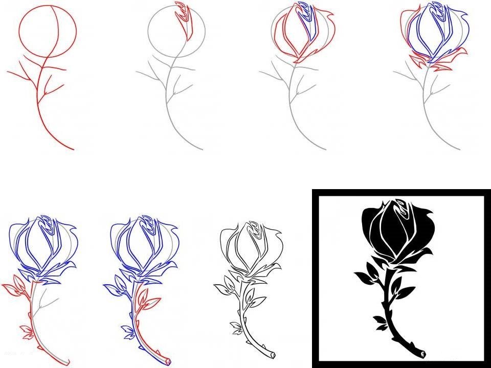 Нарисуйте розу с шипами и листьями. Начните с внутренних листьев и двигайтесь наружу, рисуя места, где они сгибаются. Когда дело доходит до штриховки, раскрасьте розу ярко-красным карандашом , используя более глубокий красный цвет для теней под лепестками, или используйте графитный карандаш .