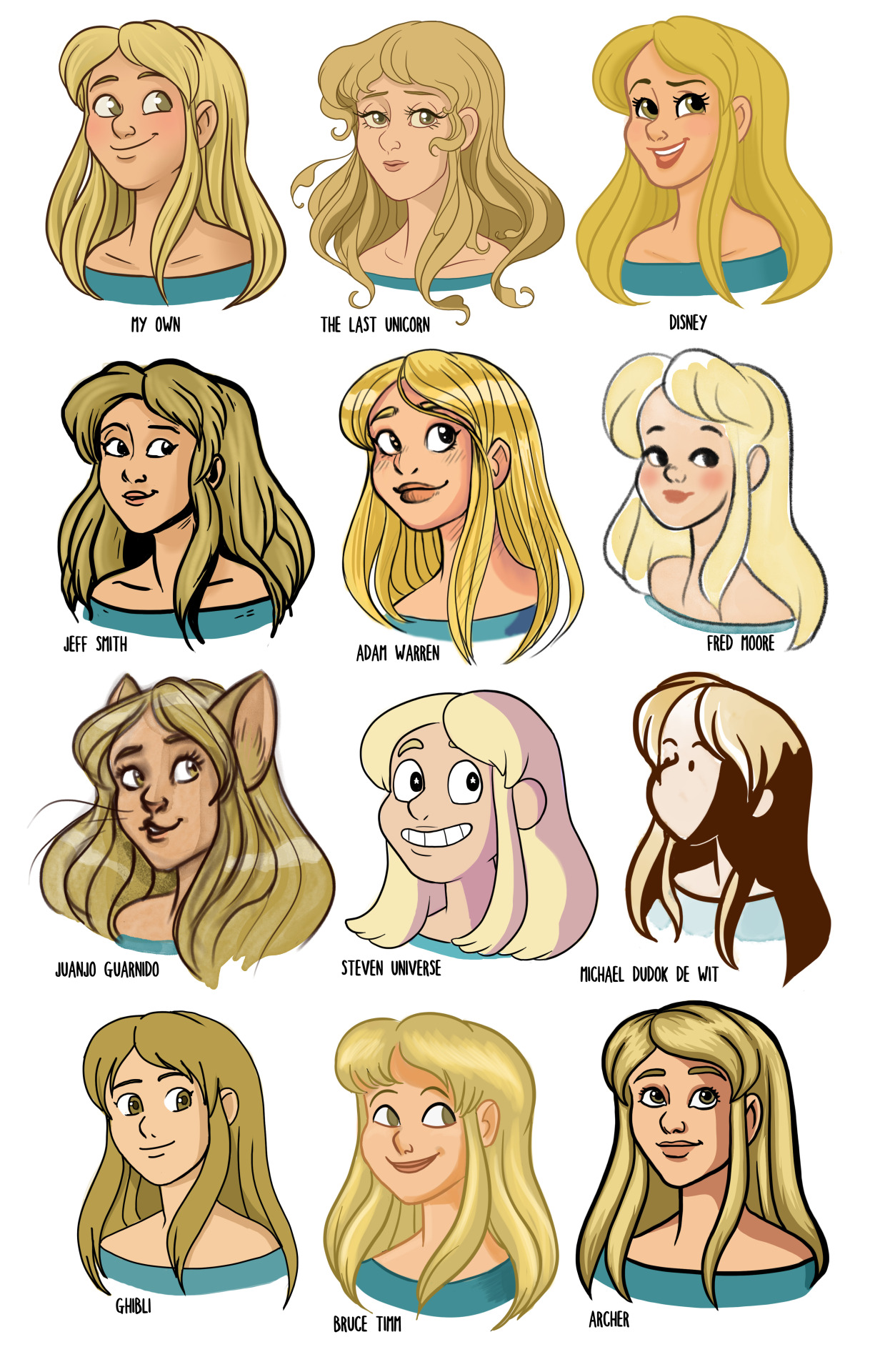 Последний вариант для не ленивых художников. Вы можете взять определенный объект и нарисовать во множестве разных стилях. В интернете есть даже такой челлендж. В нем нужно нарисовать своего персонажа или себя в разных стилистиках. Например, как ваш персонаж бы выглядел в Симпсонах, Времени приключений и прочих культовых мультсериалах. И это нужно сделать примерно в пятидесяти разных стилях. Когда мультфильмы и мультсериалы закончатся, вы начнете генерировать что-то своё. Из этого и можно будет выбрать особые элементы.