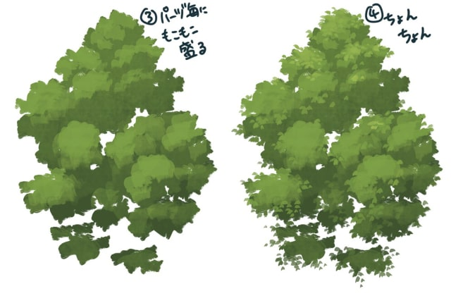 Проделайте тоже самое на еще одном слое, сделав траву еще ярче. Каждый слой и яркость цвета очень важны, ведь они помогает придать рисунку визуальный объем.