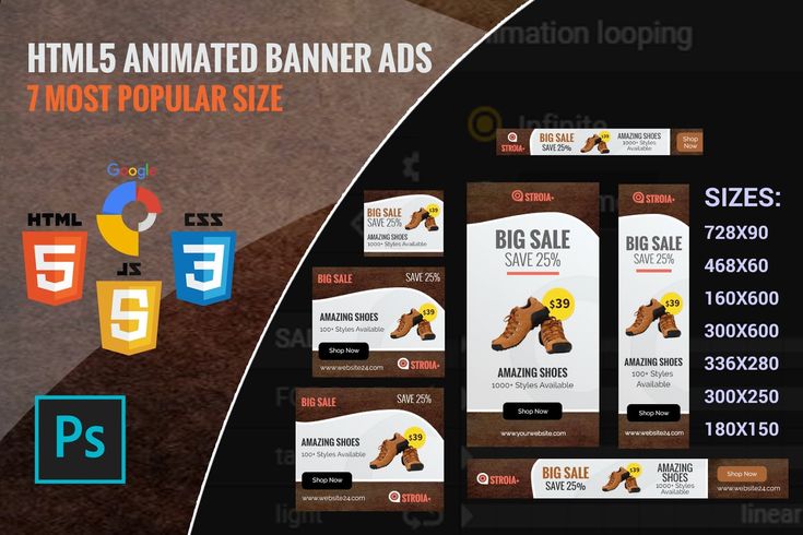 Наряду со звуковыми и визуальными элементами рекламы баннеры HTML5 также содержат код HTML5. Этот код позволяет рекламе работать и адаптироваться к различным средам, например, к мобильным устройствам и настольным компьютерам. Чтобы ваша реклама работала на разных устройствах, необходимо следовать рекомендациям по рекламе мобильных баннеров.