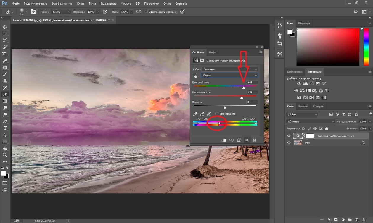 Цветокоррекция – изменения фонового цвета. Т.е. таким способом в Photoshop можно изменить общий фон фотографии. Например, полностью сделать снимок в красных тонах. Или одни цвета на фотографии преумножить, а другие погасить.