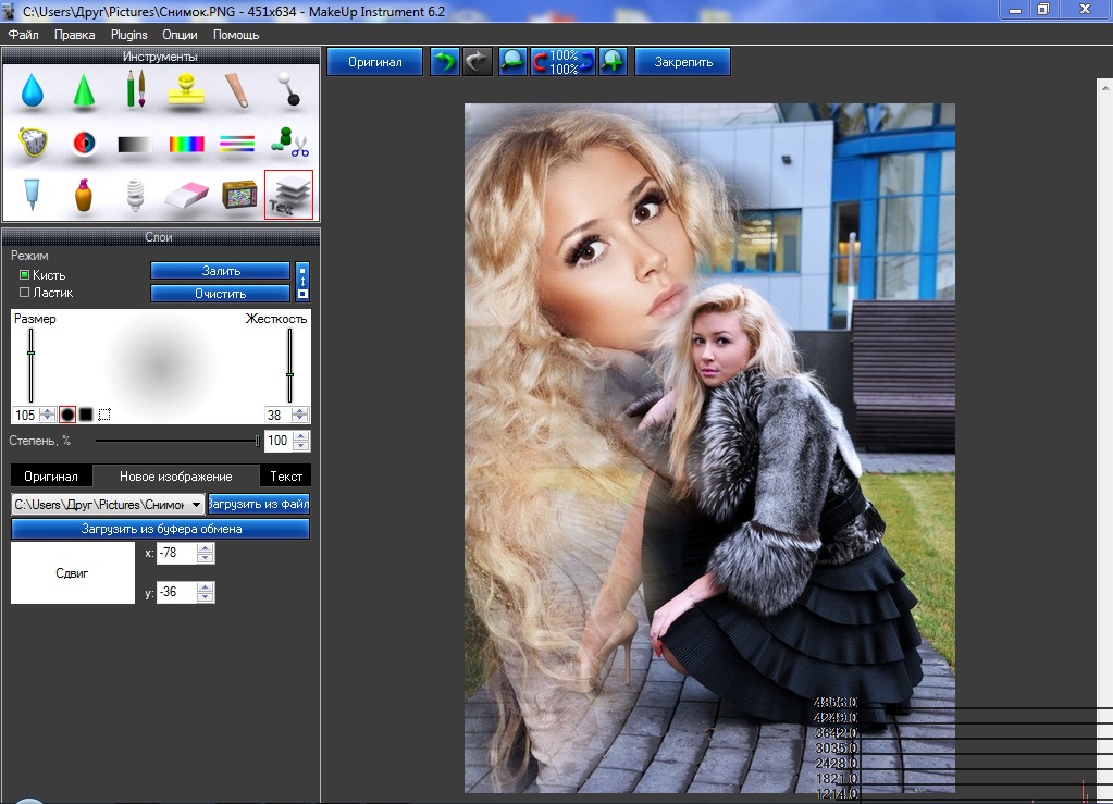 Перетащите созданный слой под основной слой Перейдите в меню Слой и выберите Свести изображение для управления всеми слоями.