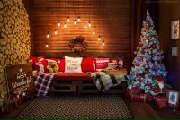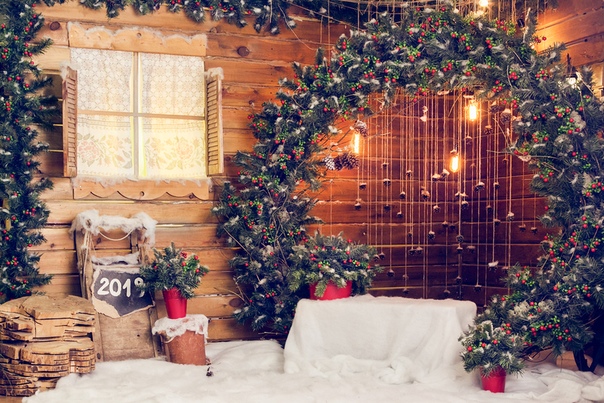 - Рождественские венки, праздничные огни и вечнозеленые растения создают теплую атмосферу Рождества на фоне вашей фотобудки.