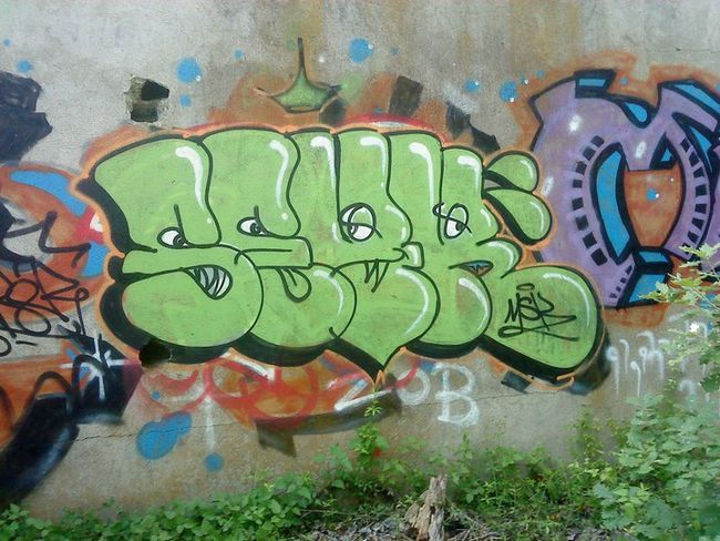 Граффити старые, местами обсыпались