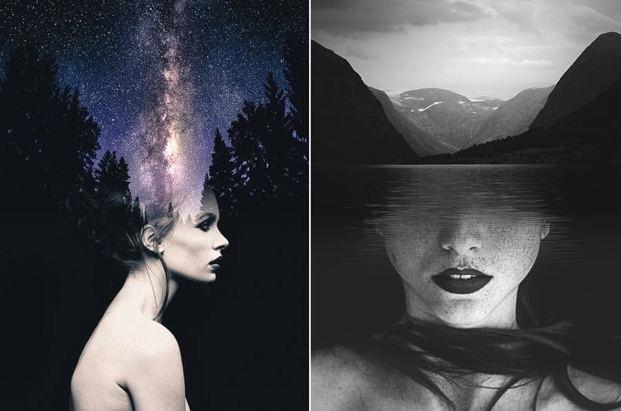 Фотографии с эффектом двойной экспозиции получают с использованием особой техники обработки снимков. В результате обработки два снимки объединяются в один кадр.