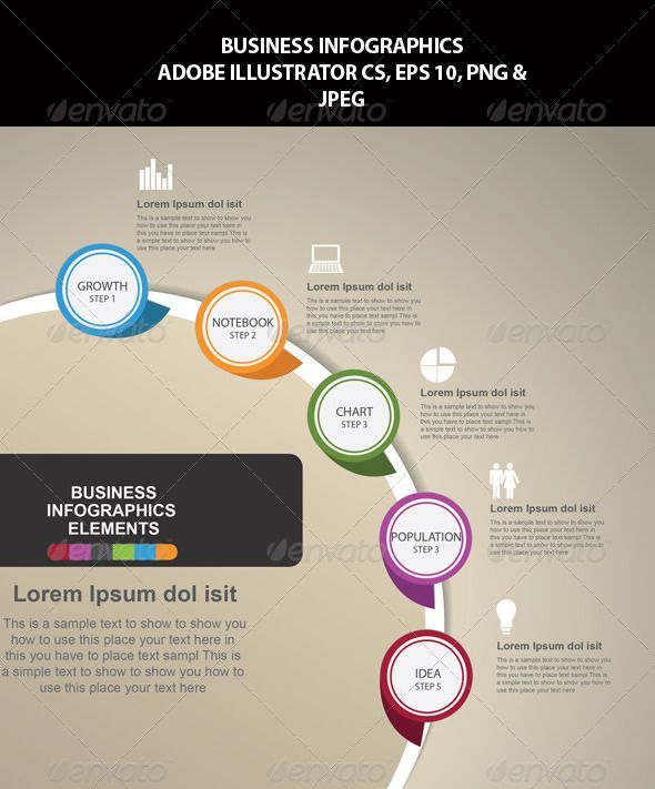 Скриншот шаблона бизнес-инфографики может немного вводить в заблуждение — вы не получите полный комплект. Вместо этого вы можете загрузить три элемента из этого шаблона за 15 долларов, доступного на Creative Market. Три включенных изображения, однако, очень высокого качества.