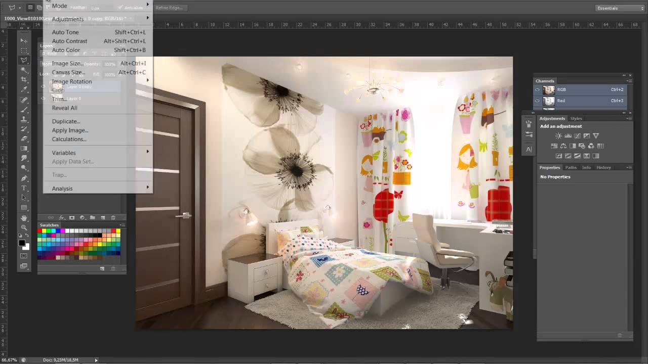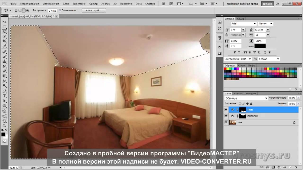 Шаг 3 — 15:00Для этого рендеринга цвет стены не был точным. Итак, с помощью пипетки я выбрал существующий цвет этой задней стены. Я беру этот цвет и корректирую его, чтобы сделать его более точным. Это не будет идеальным числом CYMK для вашего цвета из-за световых эффектов пространства, но вы сможете подойти довольно близко.Затем я использовал волшебную палочку, чтобы выбрать заднюю стену. Затем я использую инструмент «Ведро с краской», чтобы заполнить выделение новым цветом. Теперь он должен казаться более ярким и точным.