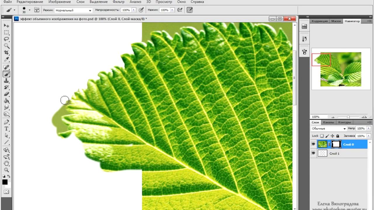 Миниатюра маски слоя появляется на «плоском» слое.