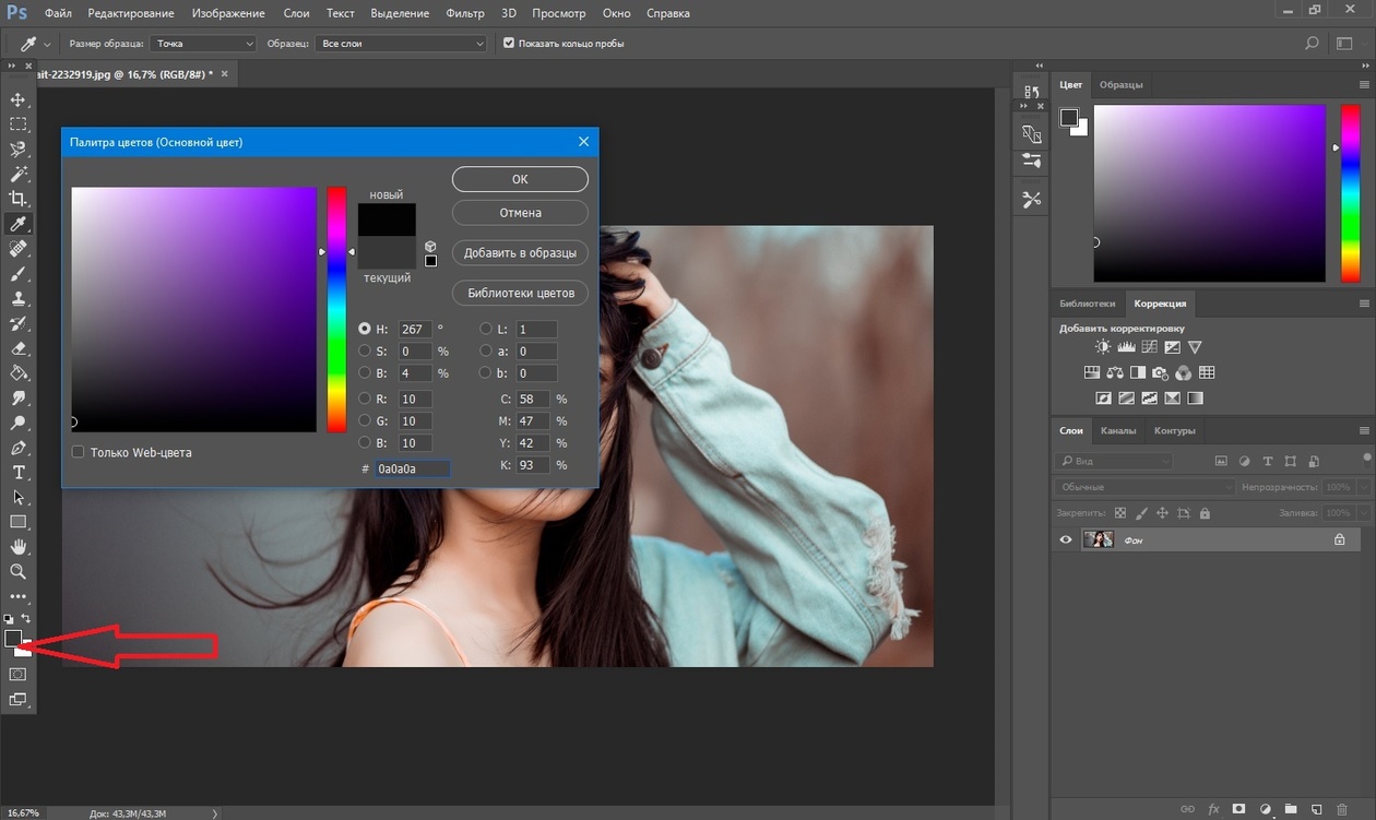 .Нажатие на образец цвета.