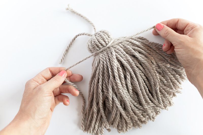 - Отрезаем ещё один фрагмент нити для перевязывания и обвязываем ими кисточку поперёк отступив немного от верхней перевязи.
