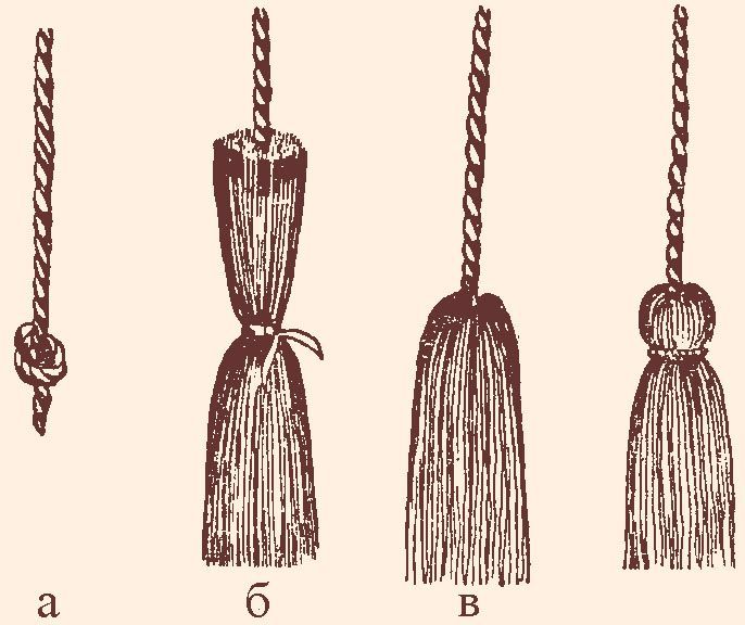 Но не одни лишь суеверия любовь народную к кисточкам пробуждали. Кисть красуется на академических шапочках и священнических ризах. Она украшает военные мундиры разных стран, знамёна, хоругви, иконы… Вот и нынешнее лето прошло под эмблемой огромных серёжек-кистей.Всего-то дела: сотворить кисть покрупней, навесить её на швензу – и можешь не сомневаться, ты в тренде. Ну, а уж о шторах, торшерах и прочих кисточных интерьерных проявлениях даже говорить не приходится. Они просто есть. Есть и будут везде, всегда, не взирая на моду со всей её переменчивостью. В общем, учимся делать декоративные кисти из того, что под рукой. Для чего-нибудь, а непременно полученный навык пригодится.
