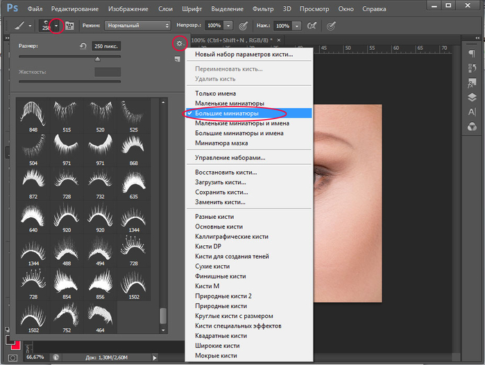 Чтобы вызвать окно настройки кисти нажмите F5 .