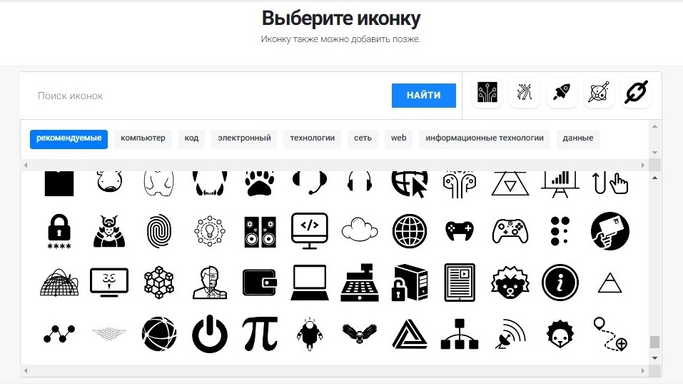 Просто выберите категорию, которая best представляет ваш бизнес, и он автоматически сгенерирует для вас список связанных символов.
