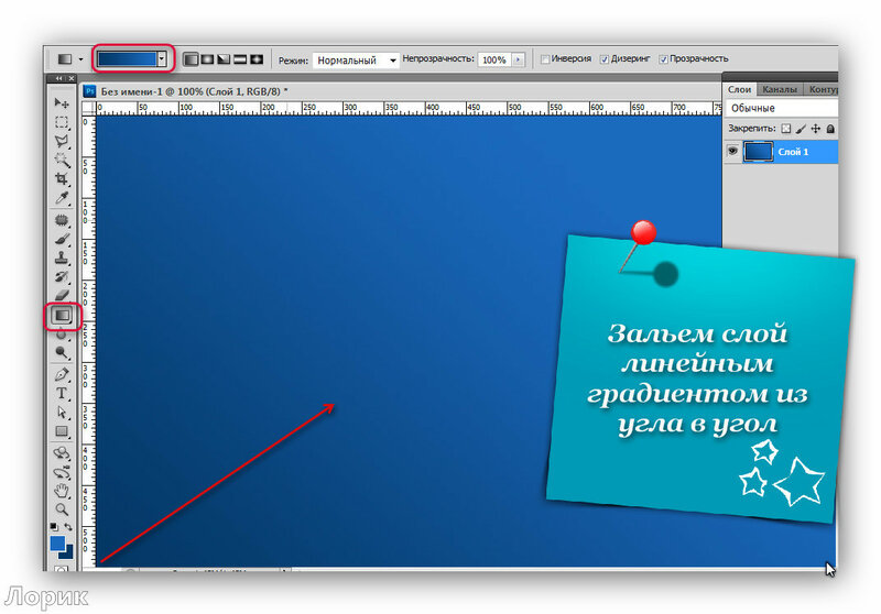 Далее я хочу сделать рамочку для второй части текста логотипа. Для этого создаю новый прозрачный слой и нажимаю инструмент «Прямоугольная область» на панели инструментов, потом делаю заливку этой области (кнопка «Заливка» на панели инструментов).