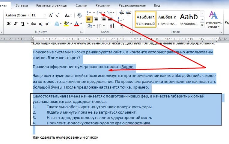 Как сделать список в Word – Выделение текста для преобразования его в список