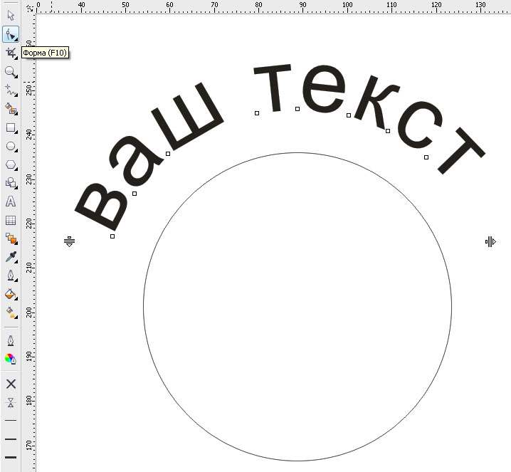 Когда текст расположится внутри круга, отпускаем клавишу мышки:
