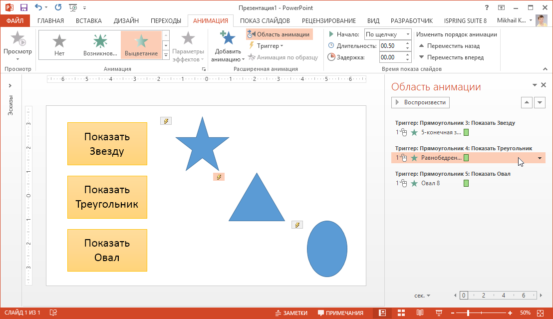 Очень часто в заданиях требуется исключить лишние объекты или понятия. Применение такого средства анимации как триггеры, позволяет решать проблему очередности объектов в настройках анимации. Триггер — средство анимации, позволяющее задать условие действиями времени выделенному элементу. При этом анимация запускается по щелчку. Использование триггеров в презентациях позволяет сделать их интерактивными.