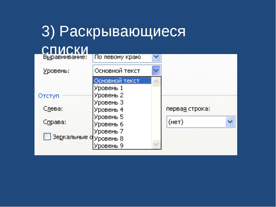 Создание раскрывающегося списка