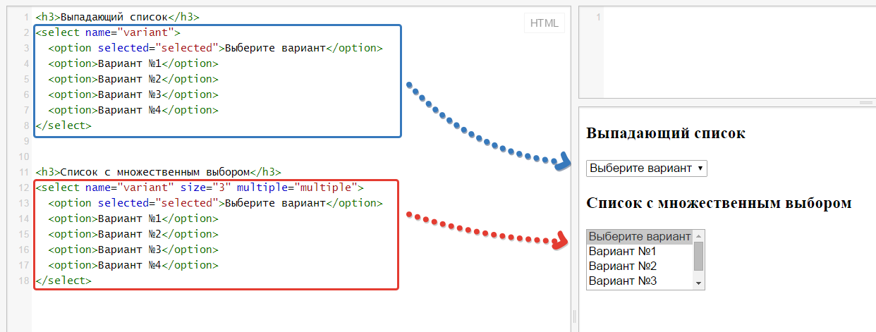 новый код — HTML-формы: выпадающие меню