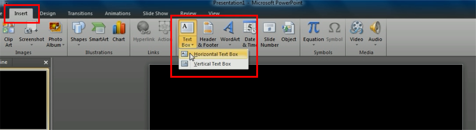 - вВставить вкладка, выберитеУсловное обозначение, В некоторых версиях PowerPoint эта опция отображается в правой части меню.