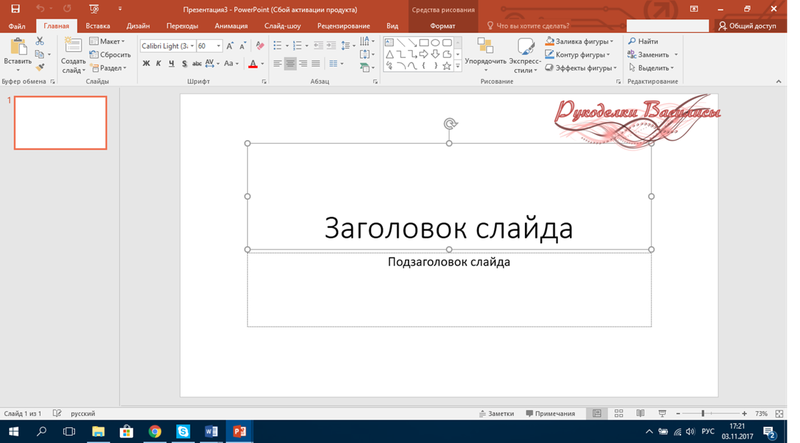 - Выберите текстовое поле на слайде, на котором вы хотите поместить символ степени.