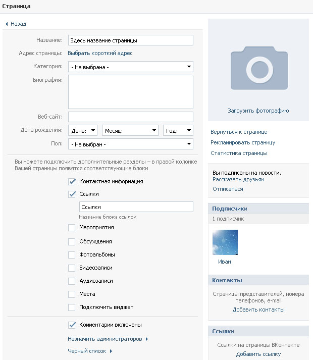 | Отображается в «Подробной информации» о пользователе. | Отображается в боковом блоке «Сообщества». Служит дополнительной рекламой, если у вас интересная страница. |