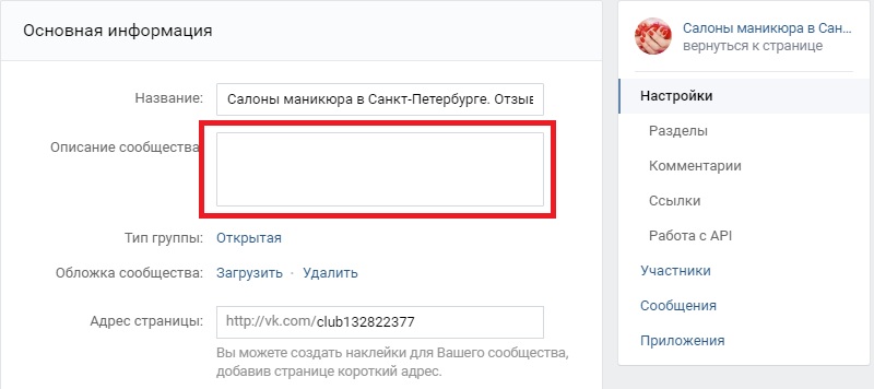 - Информация о группе. Как правило, туда вписывают все, что касается бренда/магазина/человека;