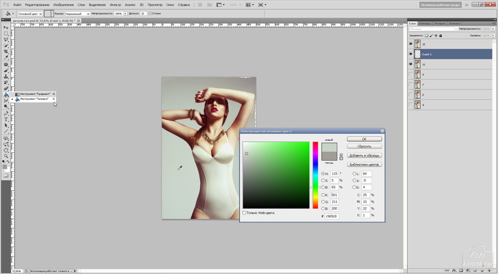 Выбрав цветовую гамму, вы можете более точно отредактировать ее.