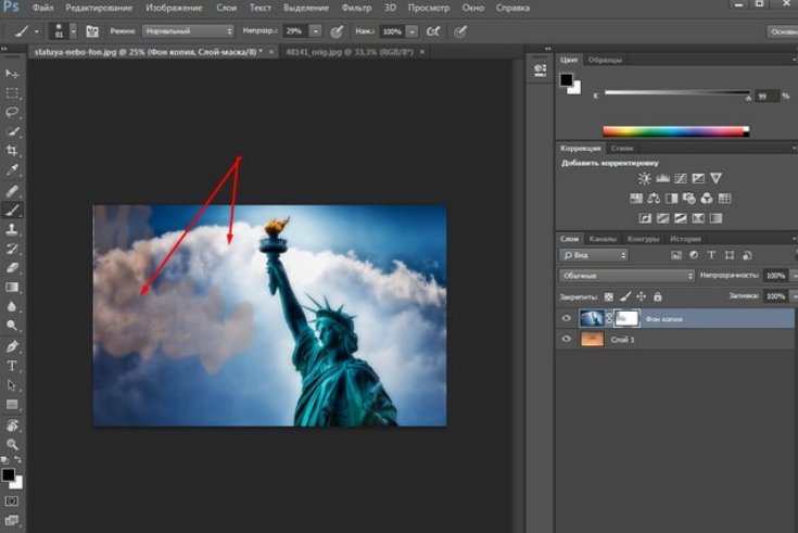 - Добавить маску слоя