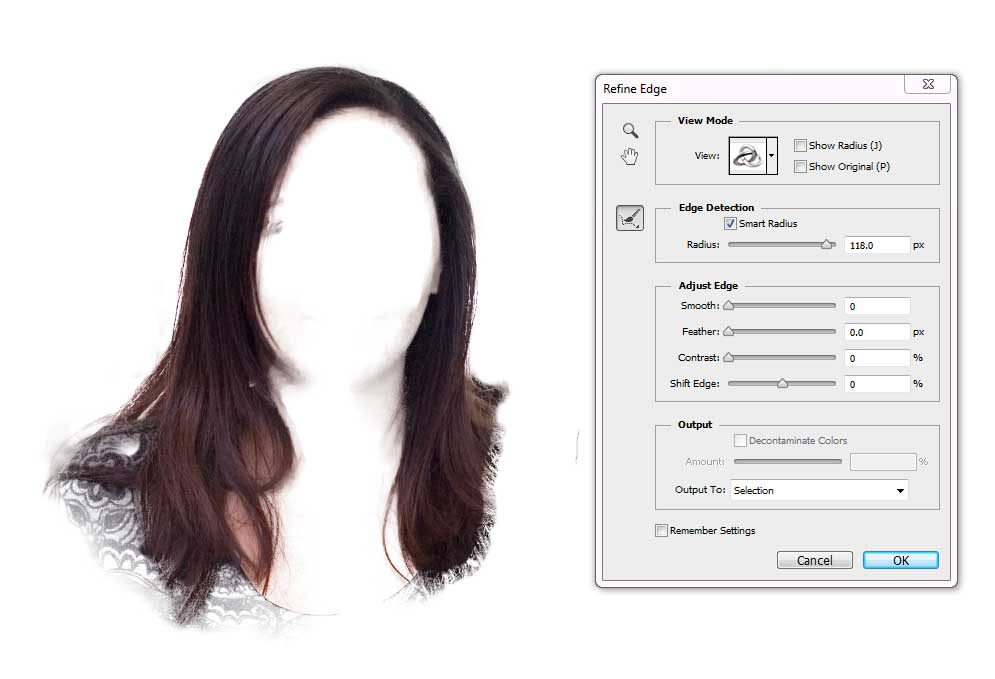 Чтобы выйти из режима быстрой маски, нажмите клавишу Q . Вы увидите выделенную область волос.