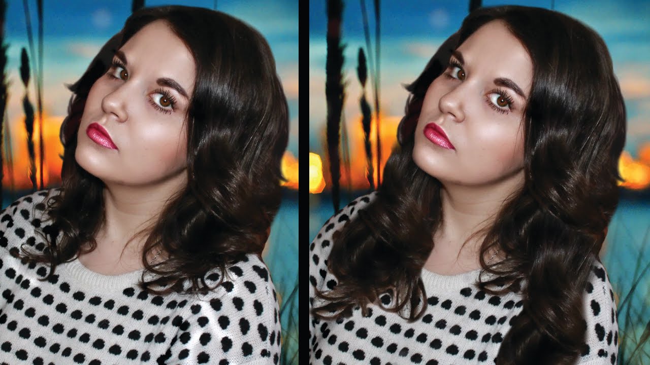 Сравните изображение модели до и после обработки фотографии в фотошопе.