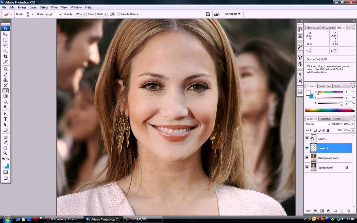 Выберите инструмент Ластик и выберите новую кисть . С его помощью вы можете улучшить области, которые не выглядят естественно, и удалить торчащие волосы в Photoshop.