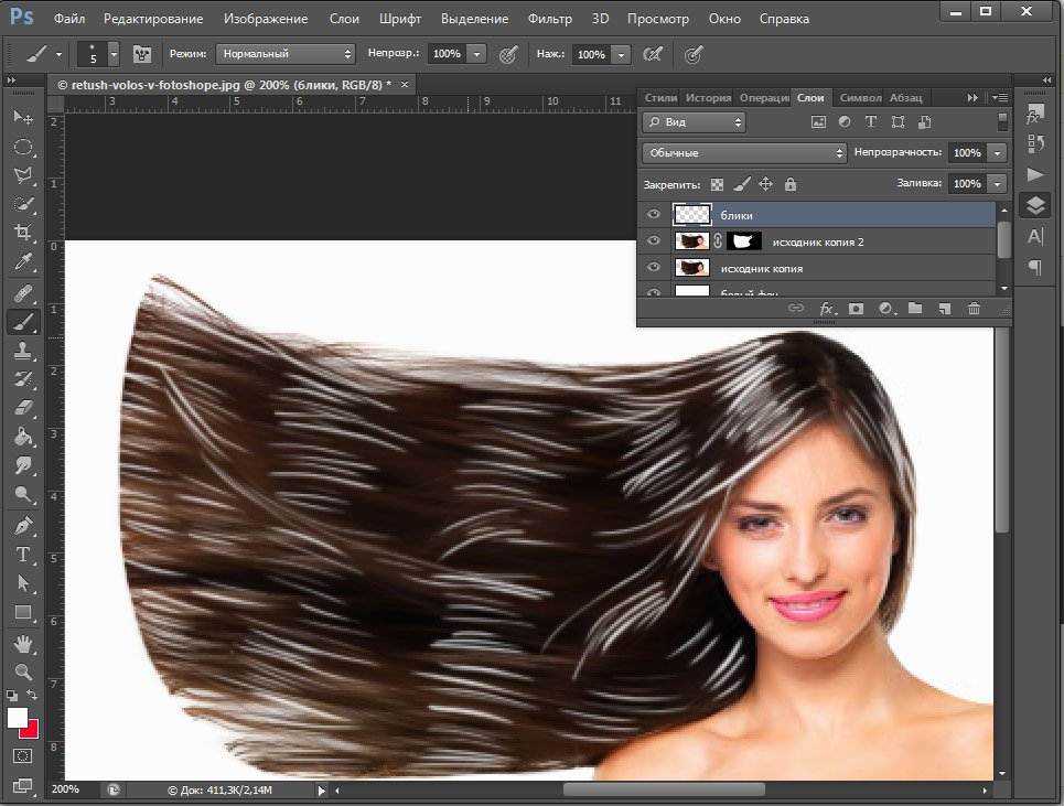 объем волос в фотошопе