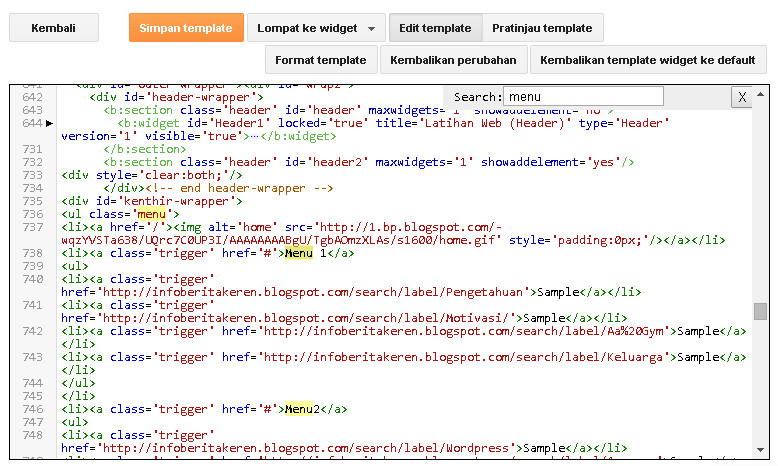 Щелкните ручку виджета кнопки меню, чтобы отредактировать виджет, если он существует, или создать новый.