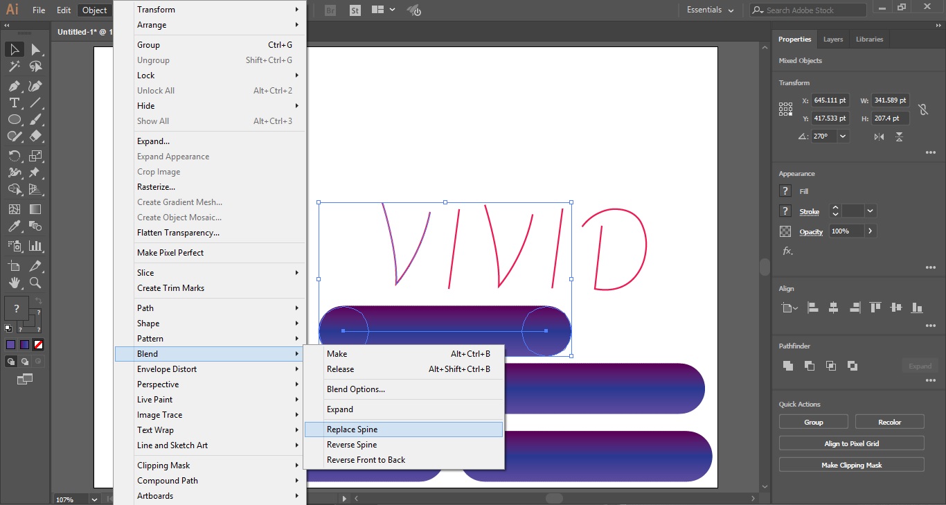 Если ваш переход выглядит не ровно, вам нужно немного прибавить количество «шагов/steps». Чтобы сделать это вам необходимо пойти в меню Объект/Object > Переход/Blend > Параметры перехода/Blend Options.
