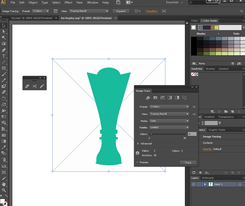 6. Теперь переключите видимость слоя «2». Измените цвет обводки на более светлый оттенок цвета, который вы использовали в слое «1». Также увеличьте Stroke weight до 4.