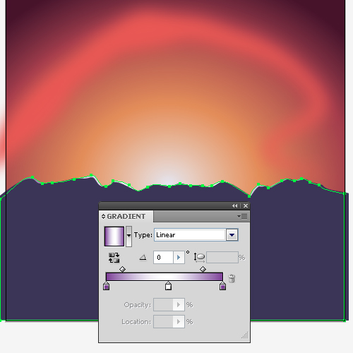 Добавим третью заливку, которую расположим ниже остальных. Она будет у нас градиентной, с прозрачностью одного из якорей 0%. (Если вы рисуете для стоков, обратите внимание, что с этим вариантом могут возникнуть сложности: при сохранении в eps10 могут появиться растровые объекты.