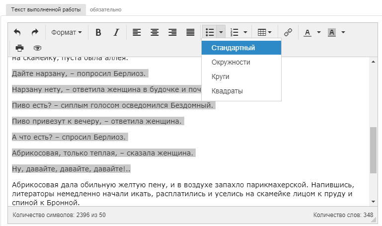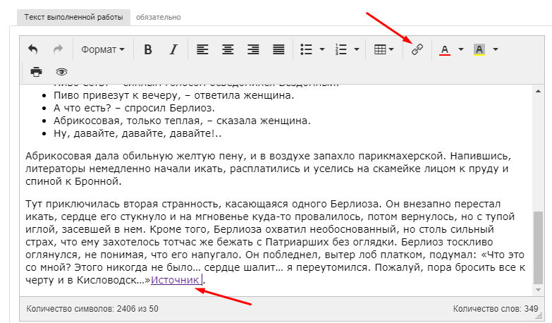 - Выделение цветом участков текста