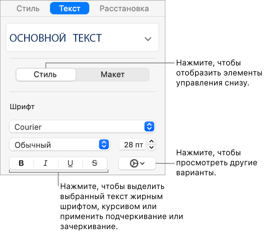 - Изменение применяемого шрифта