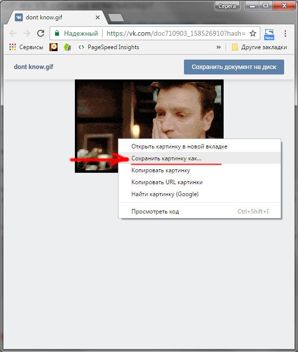 Или можно просто нажать ПКМ на гифке, открыть в новой вкладке и сохранить изображение.