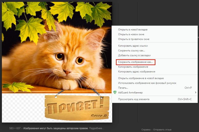 - После открытия картинки в новом окне нажимаем на нее правой кнопкой мыши и выбираем пункт «Сохранить изображение как».