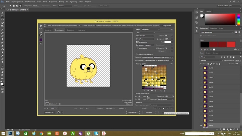 Если у вас есть готовая анимация, созданная в Adobe Photoshop, то ее можно сохранить в формате GIF, выполнив всего несколько простых действий и настроек: