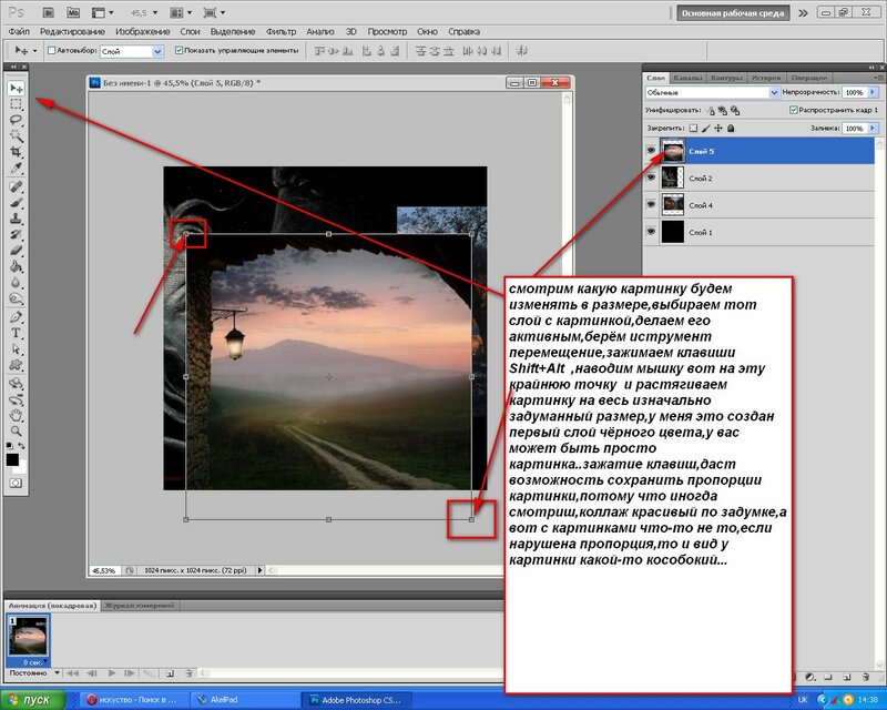 Выбранные параметры масштабирования применяются ко всем выделенным слоям или монтажным областям.