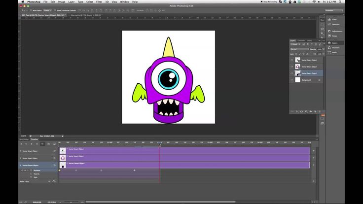 Перейдите в Окно> Временная шкала . Это откроет панель в нижней трети холста. В центре панели щелкните стрелку, чтобы открыть раскрывающееся меню, и выберите Создать анимацию кадров .