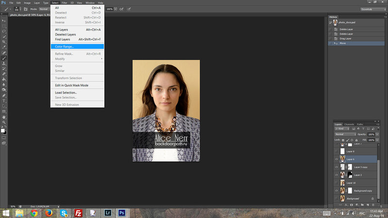 Показатель радиуса растушёвки должен быть равен либо 1, либо 2. Нажмите на «Delete», лицо исчезнет. Если пользователь желает создать классический шаблон, то перед удалением следует скопировать первое фото, задействовав комбинацию клавиш — первоначально «Ctrl» и «C», а затем «Ctrl» и «V». Таким образом, будет получено два одинаковых слоя, только на одном из них будет удалено лицо.