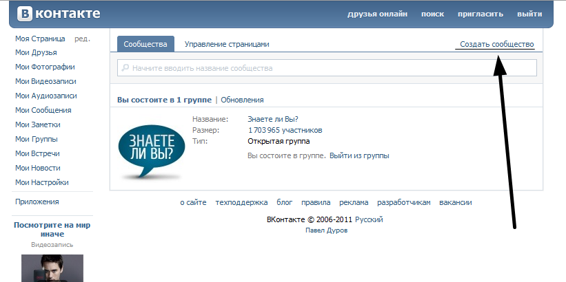 Для этого, перед созданием сайта на ВКонтакте, нужно просто зайти в управление группой: