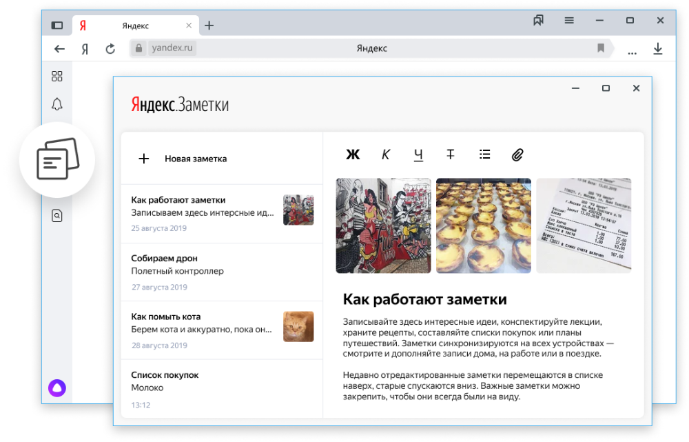 Заметка отличается от обычной записи более презентабельным видом и большим размером. В заметку можно добавлять изображения в середине текста, вставлять цитаты, распределять текст по центру, слева или справа и выделять цитаты.